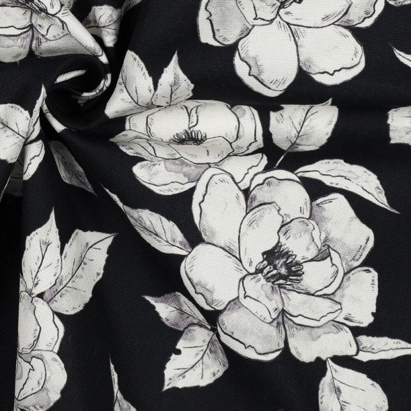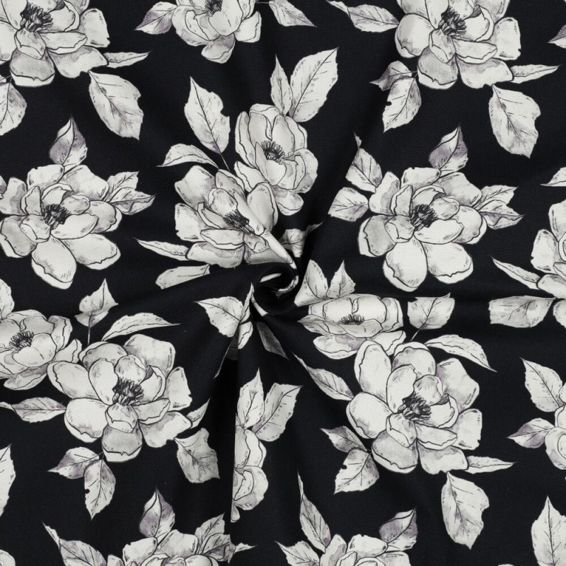 canvas digital flowers zwart